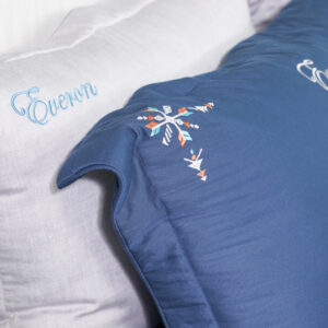 ESB22053 đi theo thiên hướng của phong cách chủ đạo Ankara, sản phẩm sử dụng hoa văn hình kỷ hà để mô phòng cách điều các họa tiết thiên nhiên. Từ chú cả nhỏ tung tăng bơi lội đến bông tuyết đầy màu sắc, kết hợp tông màu đối lập nóng lạnh tạo nên một tổng thể trẻ trung, bắt mắt. Chất liệu vải Bamboo mềm mượt với gam màu xanh đậm rất dễ sử dụng, ít bám bụi bẩn, an toàn cho làn da của người dùng.