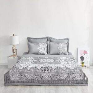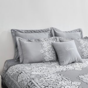 Vẫn là tông màu ghi sang trọng, nhưng EPT21044 lại tỏa sáng theo cách riêng của nó. Bộ chăn ga lấy ý tưởng từ họa tiết trên trần của các tòa nhà cổ, với kết cấu chặt chẽ vốn có của kiến trúc Châu Âu.