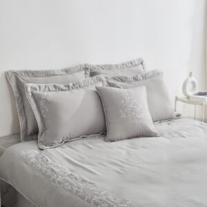 Tông màu ghi sáng luôn làm mưa làm gió thị trường chăn ga những năm gần đây, rất được khách hàng yêu thích. Nhưng năm nay, thiết kế EST21033 đã đem đến một làn gió mới.