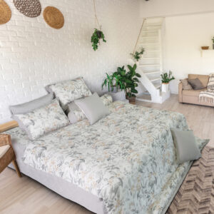 EPM22068 là một bức tranh khu vườn mùa xuân nhẹ nhàng, tươi mới. Bộ chăn ga sử dụng tone màu ghi nhạt trên cả nền vải và màu vẽ của hoa, tưởng đơn điệu nhưng lại vô cùng hài hòa, tinh tế. Hình ảnh những bông hoa được tối giản màu sắc nhưng vẫn đầy đủ sắc độ, nhấn nhá chút màu hồng xinh xắn tôn lên sự tinh tế cho căn phòng ngủ nhà bạn. EPM22068 sử dụng chất vải Modal mềm mại, thoáng khí, giúp đảm bảo chất lượng giấc ngủ tối ưu.