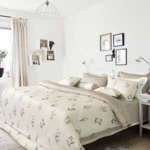 Vẫn là một thiết kế theo chủ đề thiên nhiên, nhưng EPM22069 lại mang đến cảm giác trẻ trung, hiện đại và tươi mới hơn, thích hợp với xu hướng giới trẻ hiện nay. Bộ chăn ga sử dụng gam màu be nhạt chủ đạo, rất dễ kết hợp với mọi phong cách nội thất phòng ngủ. Họa tiết của bộ chăn ga được lấy ý tưởng từ hoa cỏ mùa xuân, với hình ảnh những bông hoa nhí dại nhiều màu sắc đang tỏa hương dưới nắng, mang lại cảm giác thoải mái, dễ chịu cho bất cứ ai khi nhìn vào.