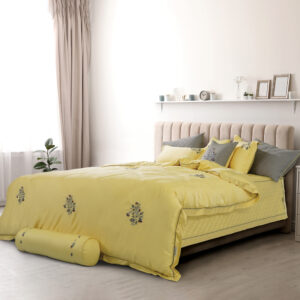 EST22031 là sự kết hợp hài hòa giữa màu vàng và màu ghi, rất trẻ trung và hiện đại. Nếu màu vàng là biểu tượng của sự ấm áp, chan hòa, thì màu ghi lại là một gam màu trung tính, là bổ trợ hoàn hảo tôn thêm vẻ đẹp của bộ chăn ga. Điểm xuyết trên nền vàng là những chùm hoa đồng nội đang vươn lên như hướng tới ánh sáng mặt trời. Bộ chăn ga EST22031 sử dụng chất liệu vải Tencel cao cấp mềm mại, mát mẻ, cùng thiết kế đặc biệt mang đến cảm giác thoải mái, tươi tắn đón chào một ngày mới.